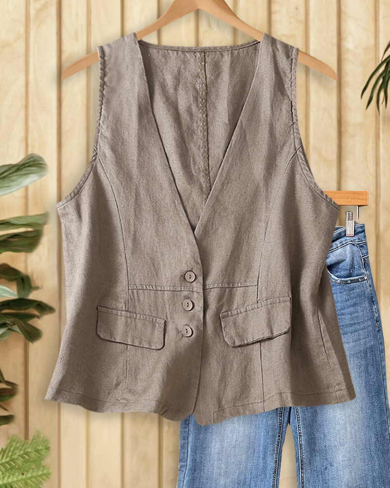 Mint Boutique Solid Color V Neck Commuting Single Breasted Vest