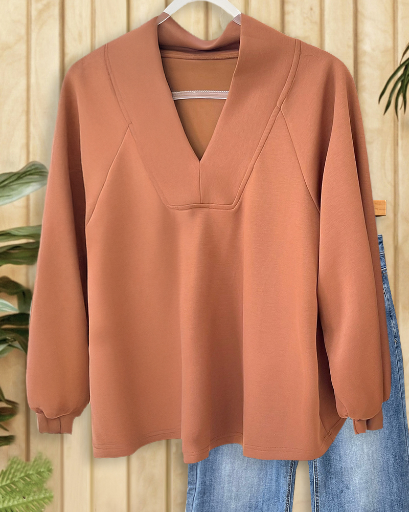 Mint Boutique Solid Color V Neck Simple Sweatshirt