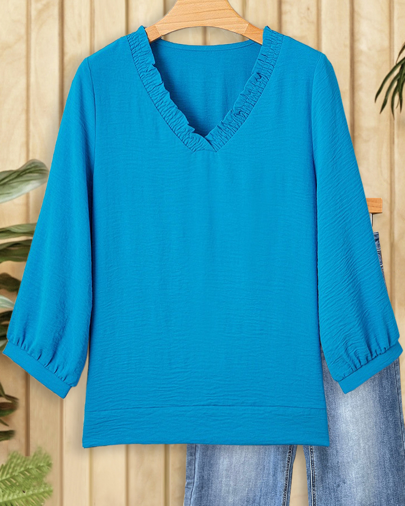 Mint Boutique Solid Color V Neck Versatile Blouse