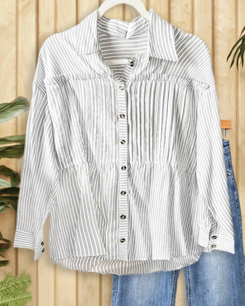 Mint Boutique Striped Chic Ruffled & Pleated Button Down Blouse