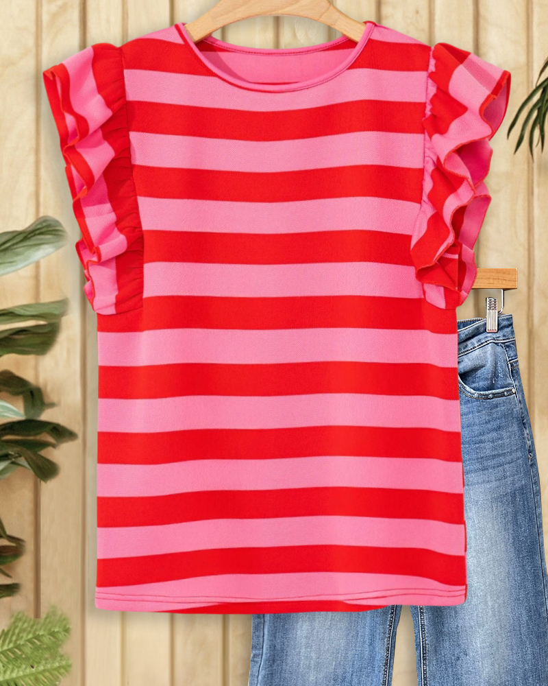 Classic striped tee with flutter sleeves, perfect for everyday comfort.