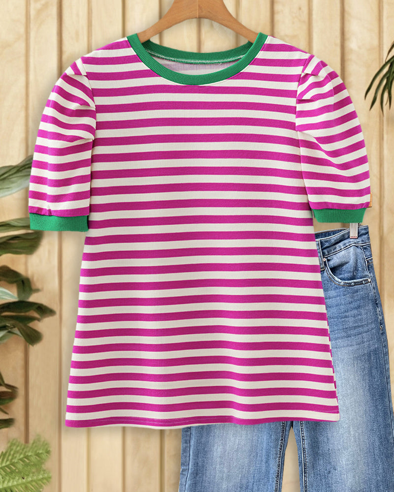 Timeless striped round neck shirt, easy to style for daily wear, work, or casual outings.