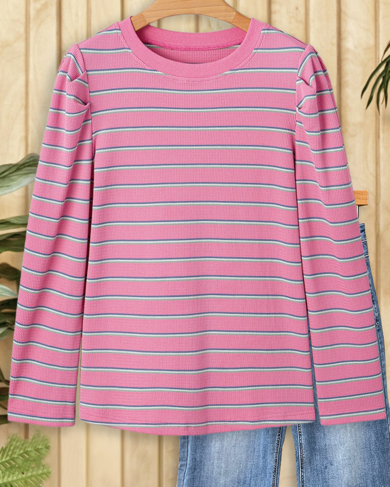 Classic striped sweatshirt with round neck, perfect for comfortable everyday wear.
