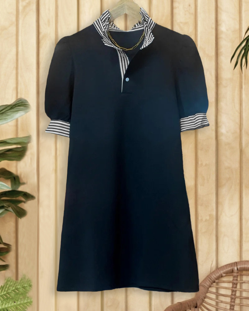 This simple mini dress features a striped patchwork design, perfect for a casual yet stylish look.