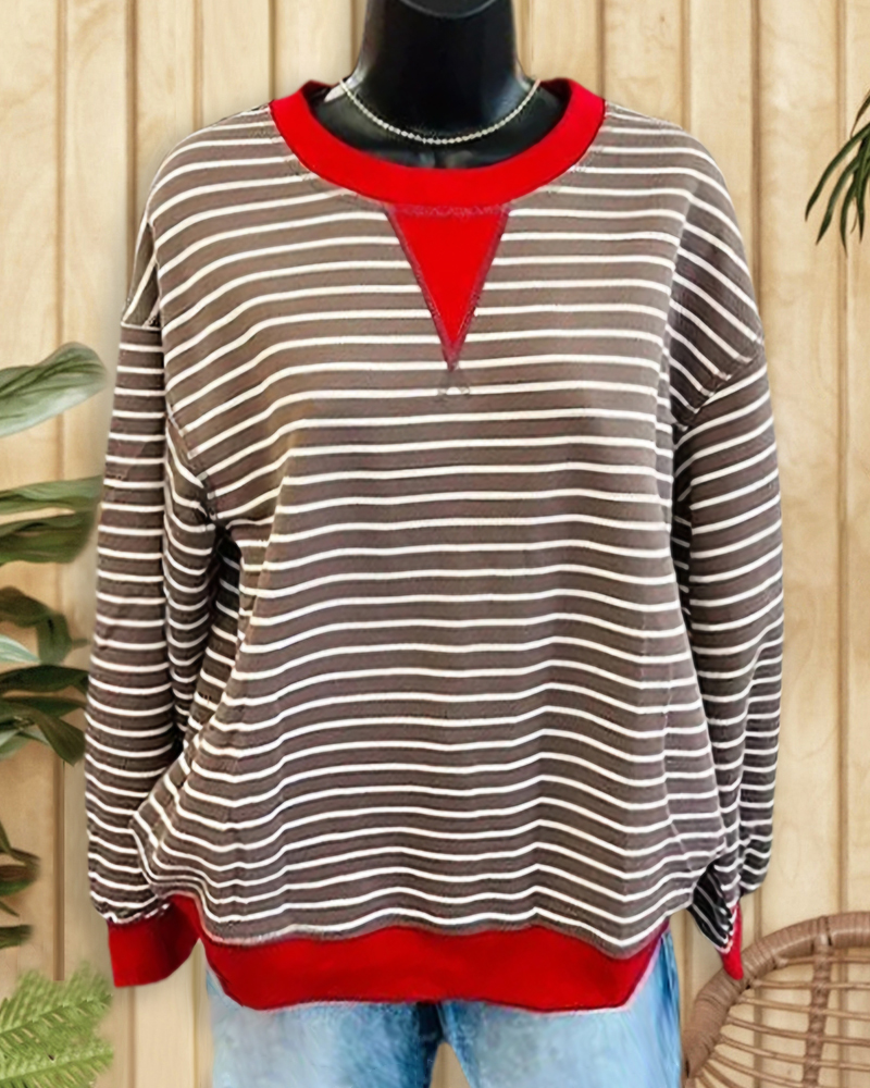 Mint Boutique Striped Round Neck Classic Drop-Shoulder Sweatshirt
