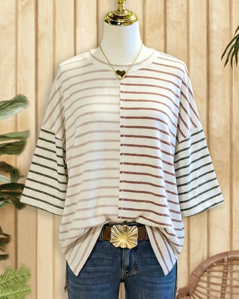 Relaxed drop-shoulder T-shirt with stripes and a round neck for casual everyday wear