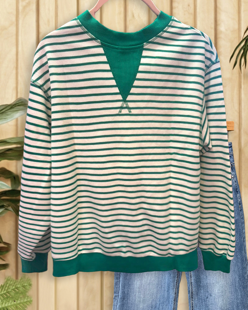 Mint Boutique Striped Round Neck Simple Drop-Shoulder Sweatshirt