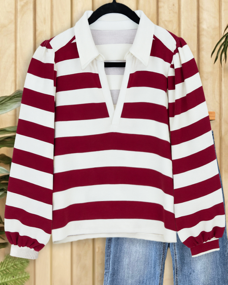 Urban striped V-neck sweatshirt, perfect for casual city outings and everyday wear.