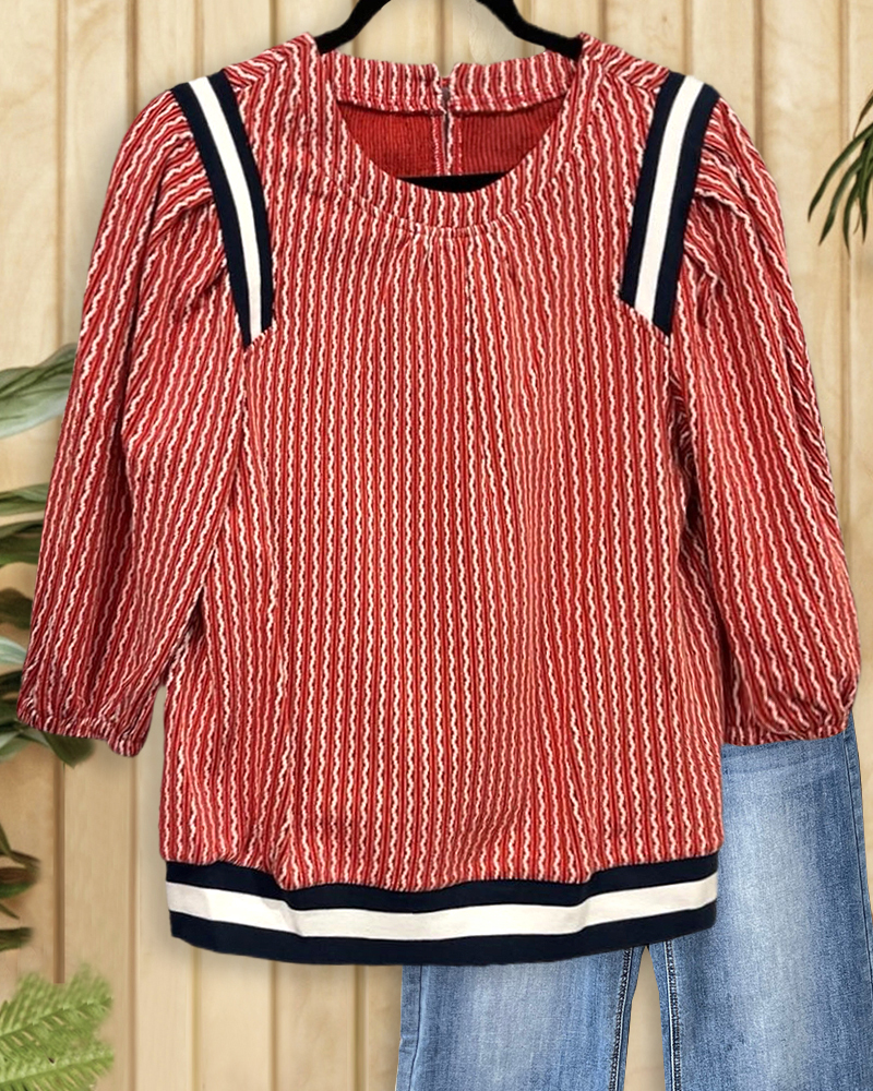 Mint Boutique Zig Zag Feminine Round Neck Puff Sleeve Blouse